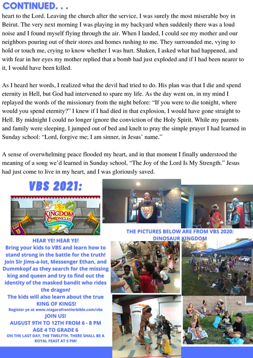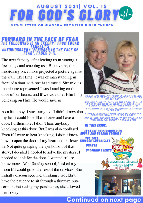 Featuring Missionaries Edgar and Rosann Feghaly, who are coming to NFBC August 29th.